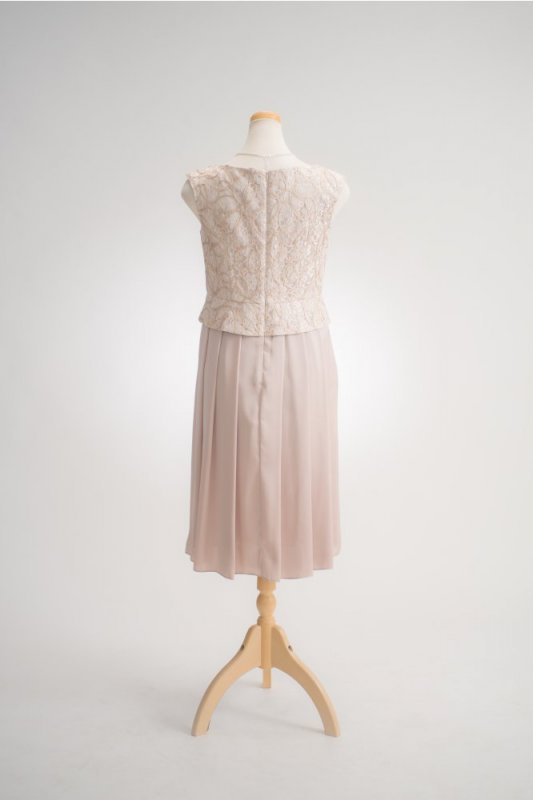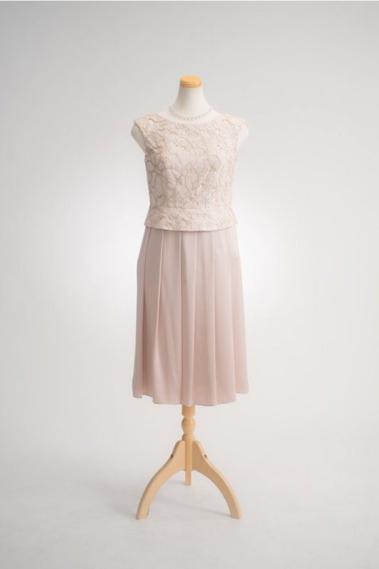 レースが華やかペプラム風ワンピース。
