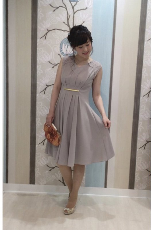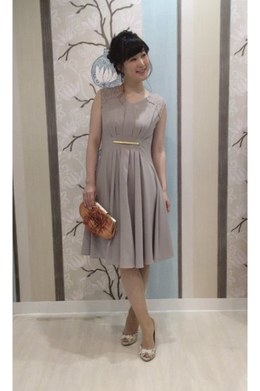 胸元のVが首元をスッキリ見せてくれる高級感のあるドレスです。