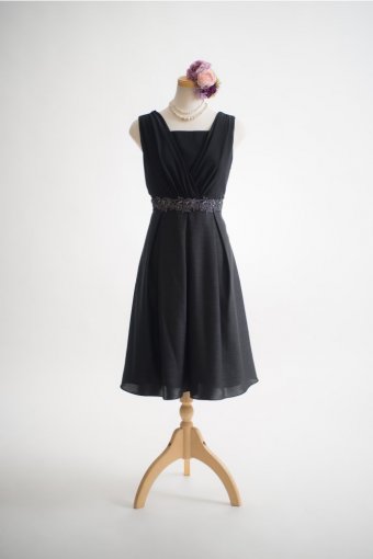 ウェスト切り替えが特徴のブラックワンピース。
