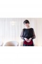 ドットチュールで袖を切り替えた透け感が大人の上品さを演出してくれるドレスです。
